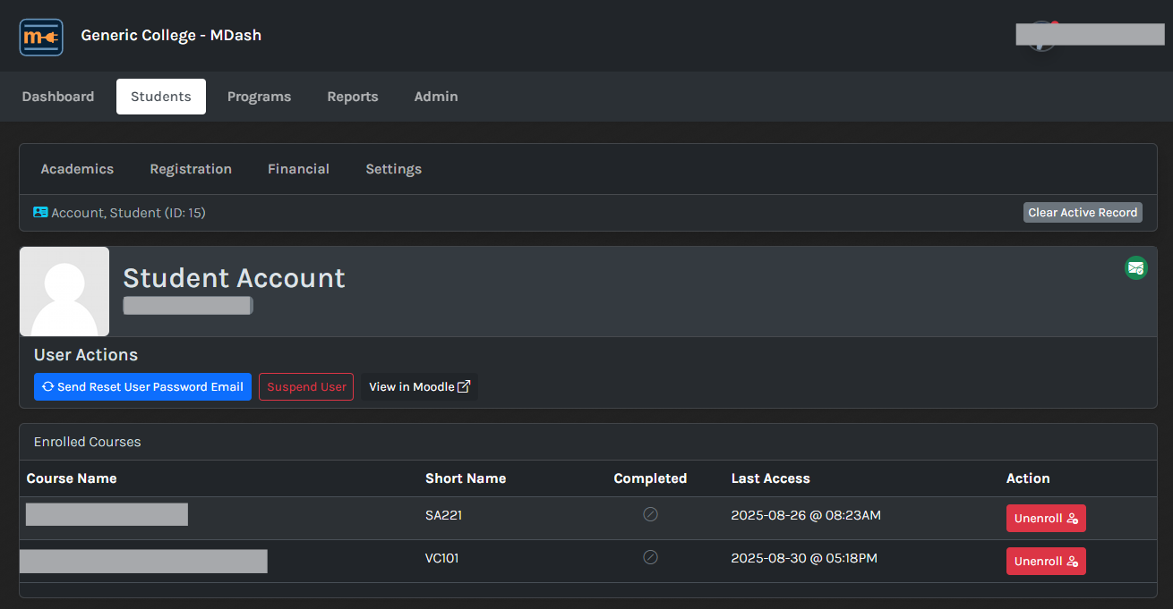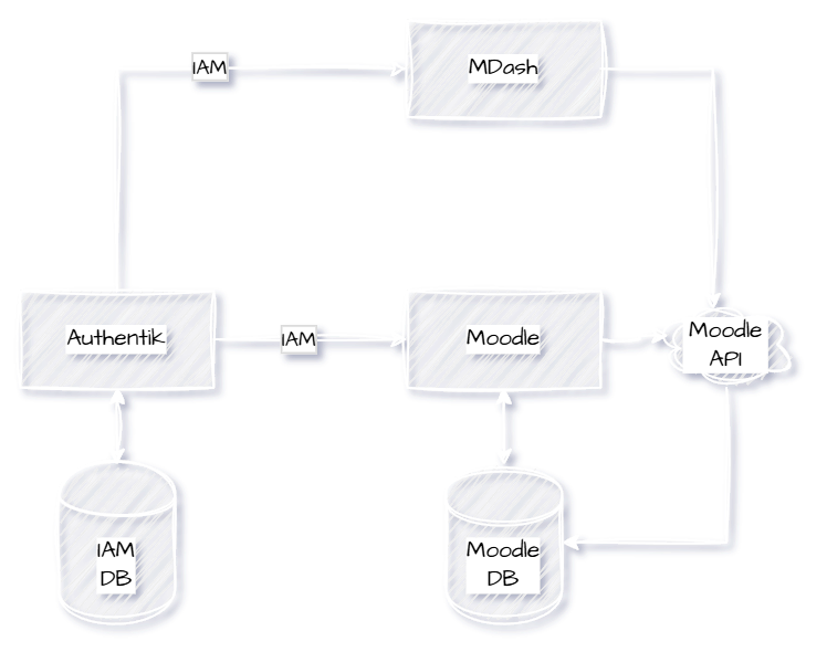 MDash is being designed so that it does not store data from Moodle (well, the least amount of data as possible). Moodle is the first-class citizen and treated as the source of truth. With Core, the Moodle API wrapper, MDash can both read and write data to the Moodle DB which is something other SIS platforms don't really seem to do in the capacity that I want. While Moodle allows other databases, like Gibbon, to take over user management, I actually have slightly different needs. In the winter, the entire server will be migrating from one host to another and I plan on introducing Identity and Access Management (IAM) into the mix.